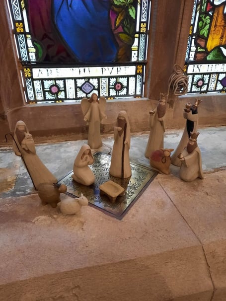 A clay figure representing the baby Jesus has gone missing from a nativity scene in Dixton Church.