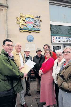 Traders and townspeople, accompanied by Beacon Editor, Robert Williams, and photographer, Des Pugh, went to the Town Council's temporary home in Priory Street last Friday morning, with the hope that either the Town Mayor, Counc. Terry Christopher, or the Town Clerk, Sarah Robson, would be present to accept the petition. That was not the case.